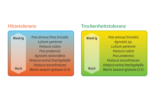 Die Sommermonate mit zunehmend extremer Hitze und langen Trockenperioden haben die üblicherweise verwendeten Gebrauchsrasenmischungen aus Deutschem Weidelgras (Lolium perenne), Wiesenrispe (Poa pratensis) und Rotschwingel (Festuca rubra ssp.), in Schattenlagen auch mit Lägerrispe (Poa supina), an ihre Leistungsgrenzen gebracht.