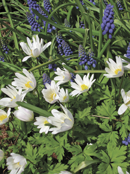 Eine hübsche Kombination bilden Buschwindröschen und Traubenhyazinthen. Beide verwildern gut.