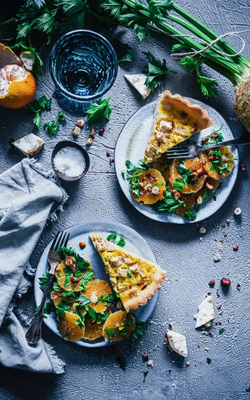 Die Knolle spendet mit knackigen Haselnüssen als Tarte die wärmende Grundlage während das Grün als Salat mit Clementinen, die im Herbst benötigten Vitamine spendet.